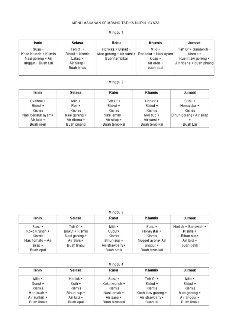 Menu Makanan Seimbang Tadika Nurul Syaza Pdf